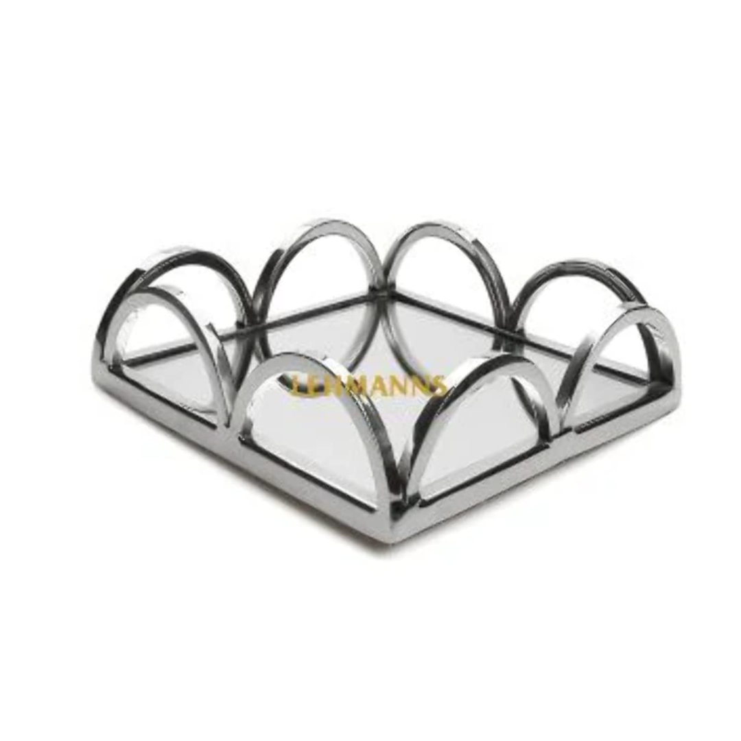 - FINEST AND ELEGANT TABLETOP. Perfectly arranged, this ideal Classic Touch Décor Square Napkin Holder/Mirror Tray With Loop Design will enhance and upgrade your dining setups. Its ideally shaped and sized to fit all napkins sizes. Great Gift for hostess, corporations, and every occasions.
