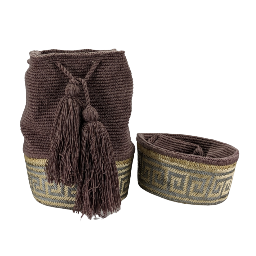 Wayuu Colombian Bag Mochila Women Handmade Basket Design Big Tassels Crossbody Medium Size
